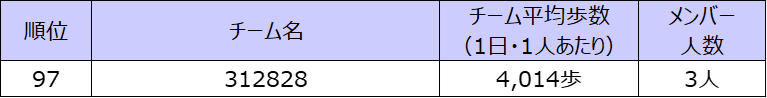 1ヶ⽉間のチーム1人あたりの平均歩数によるランキングが確定しました。