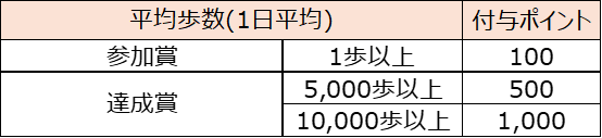 ≪個人賞≫ 「参加賞」か「達成賞」のどちらか大きい方のポイントを贈呈します。