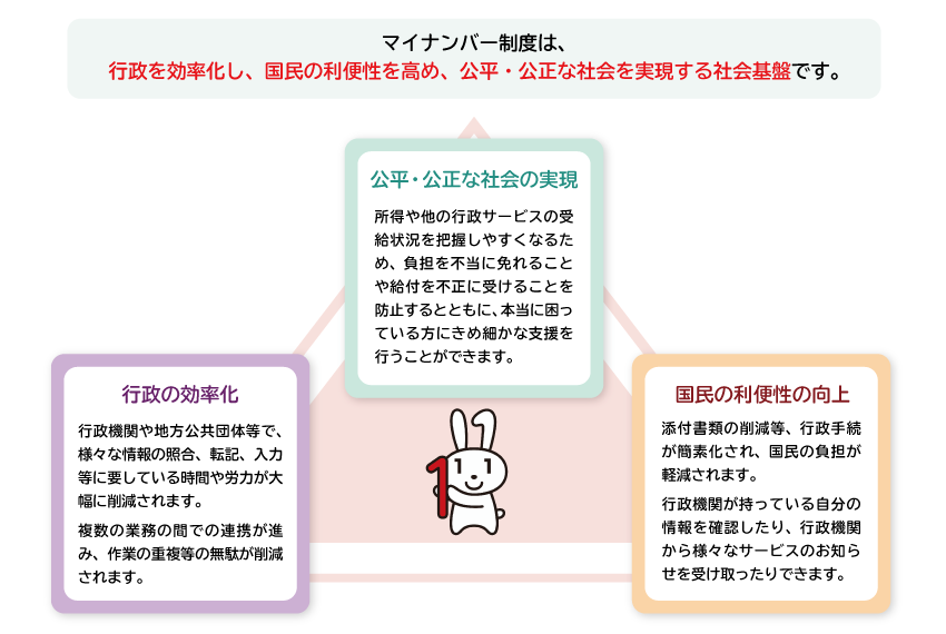 マイナンバー制度(社会保障・税番号制度)は、住民票に登録されたすべての人に12桁の個人番号(マイナンバー)を付与し、社会保障・税・災害対策の分野で個人の情報を正確かつ効率的に連携させるための制度です。